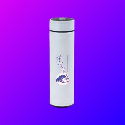 Double-wall Vacuum Insulation Stainless Steel Bottle with Smart Temperature Display & Tea Infuser. Easy to grip slim design & ergonomic design. Inspire Singing Academy logo front and back. 65 x 230 mm